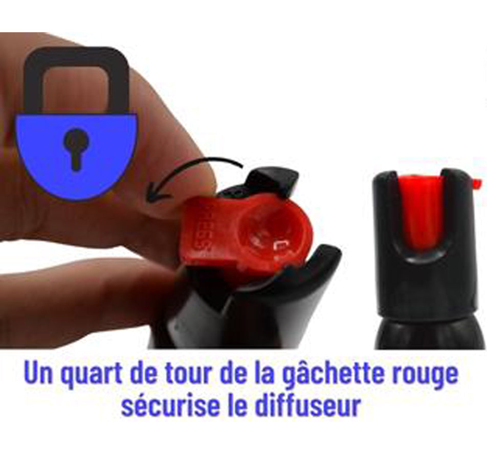 La bombe lacrymogène au poivre offre une protection instantanée grâce à son jet de poivre irritant. La neutralisation de l'agresseur est immédiate, vous permettant de prendre rapidement le contrôle de la situation.